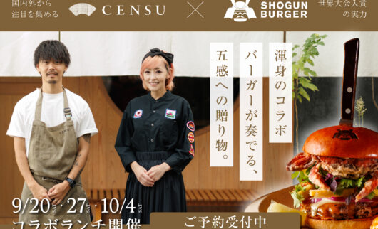 CENSUTOKYO × SHOGUN BURGER、9月20日より3週連続でランチコラボ開催!オフィシャルサイトで予約受付開始